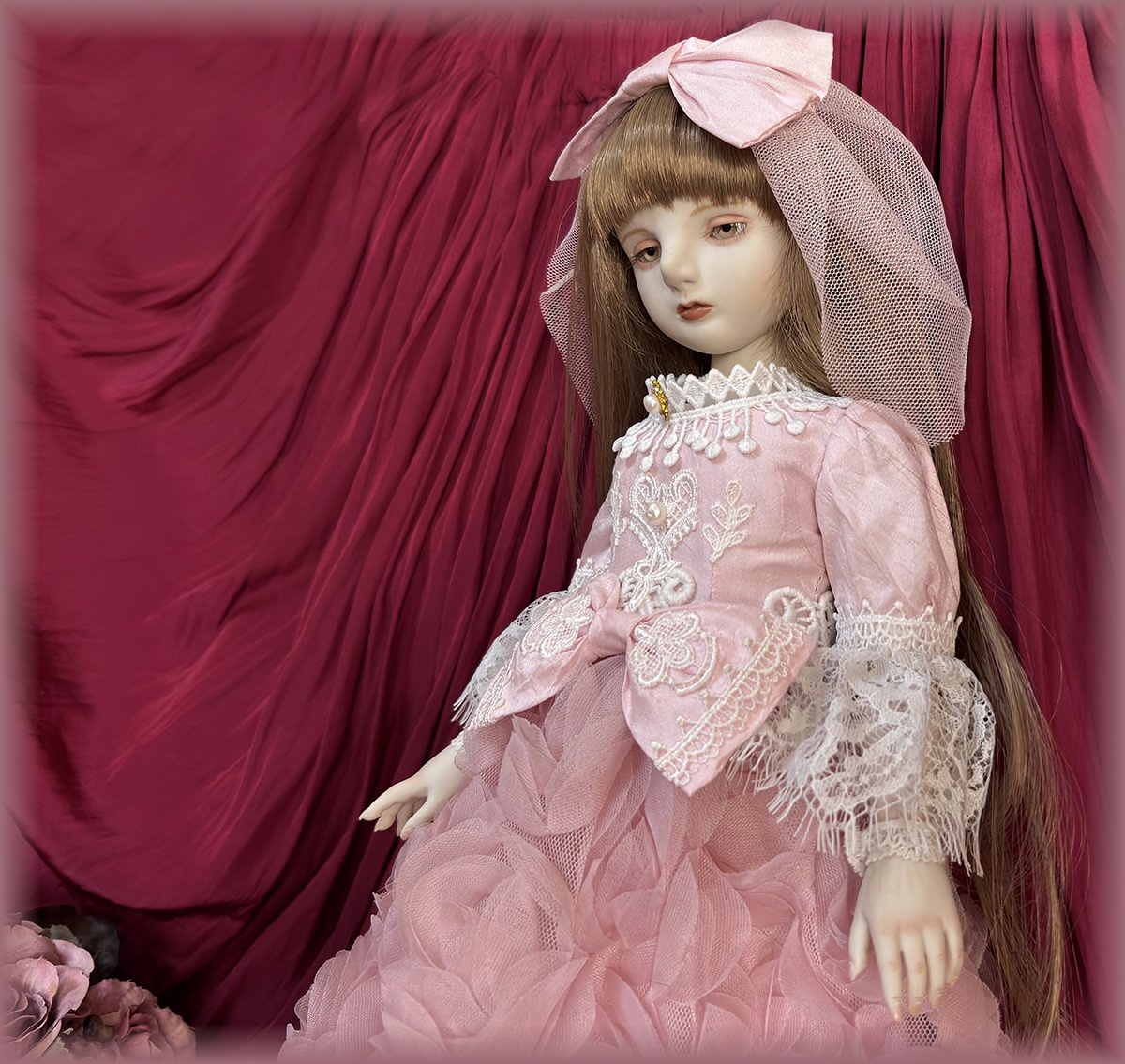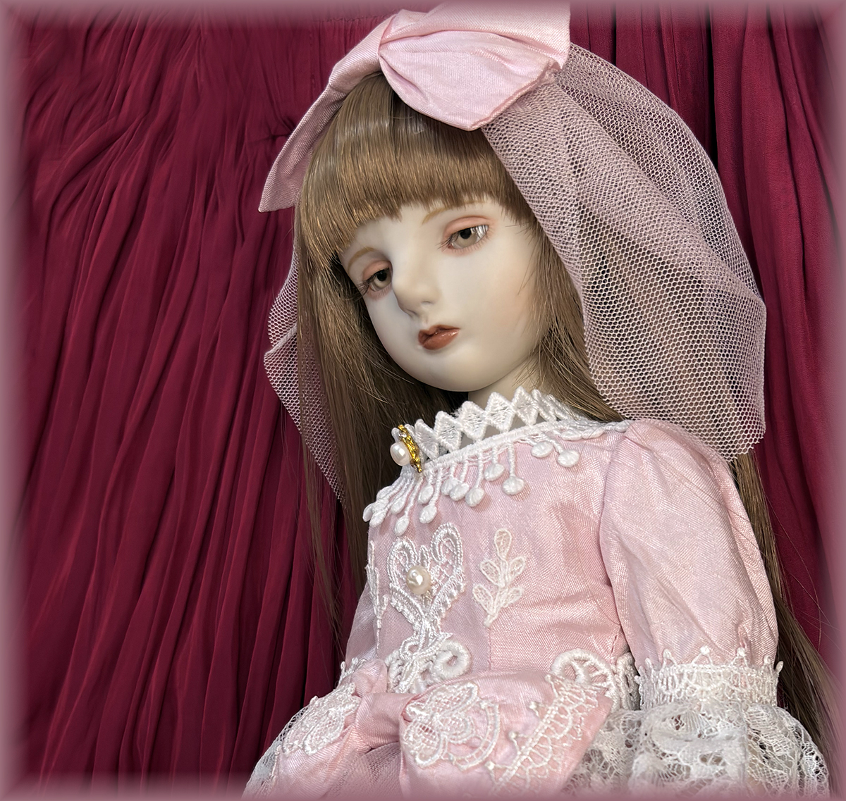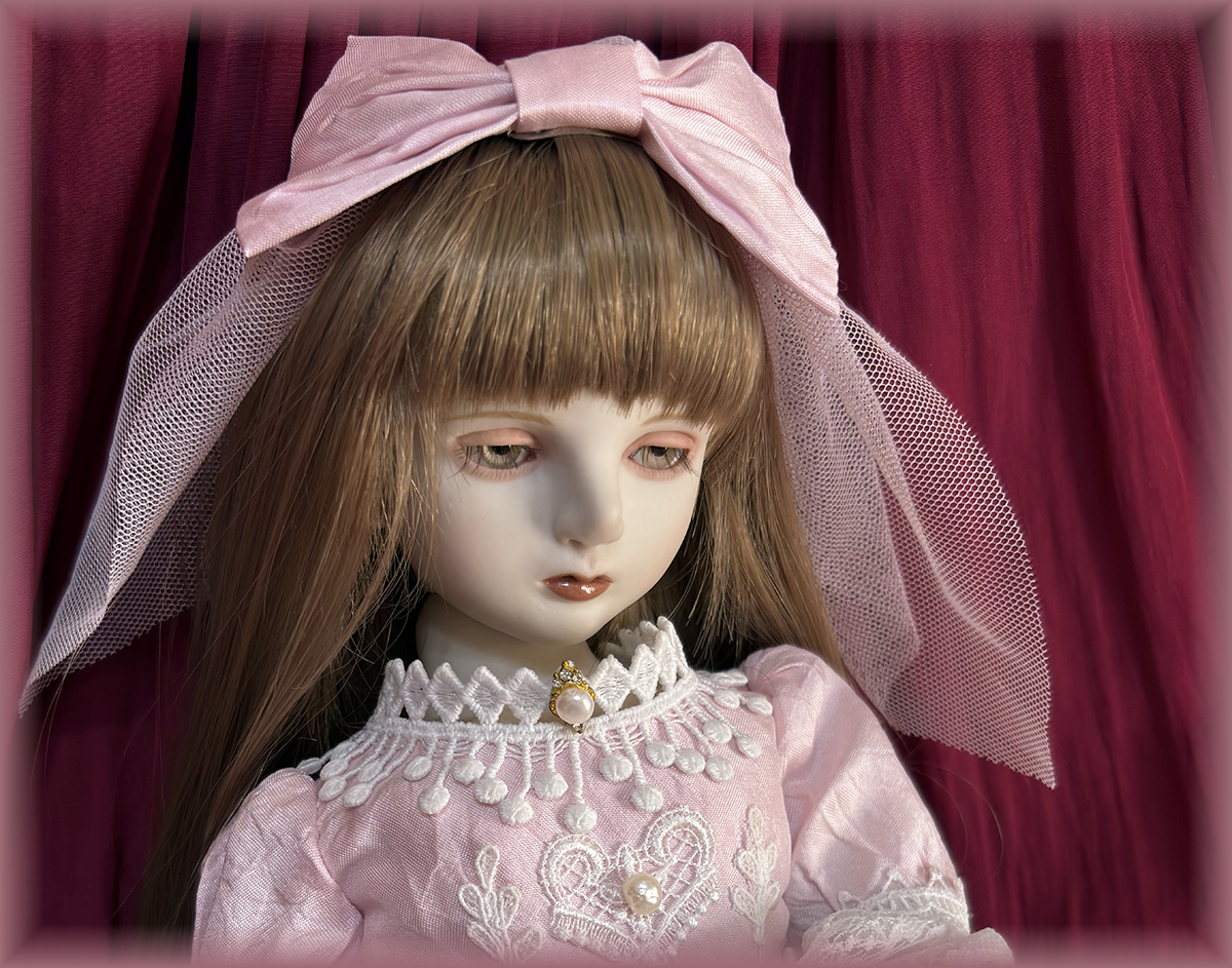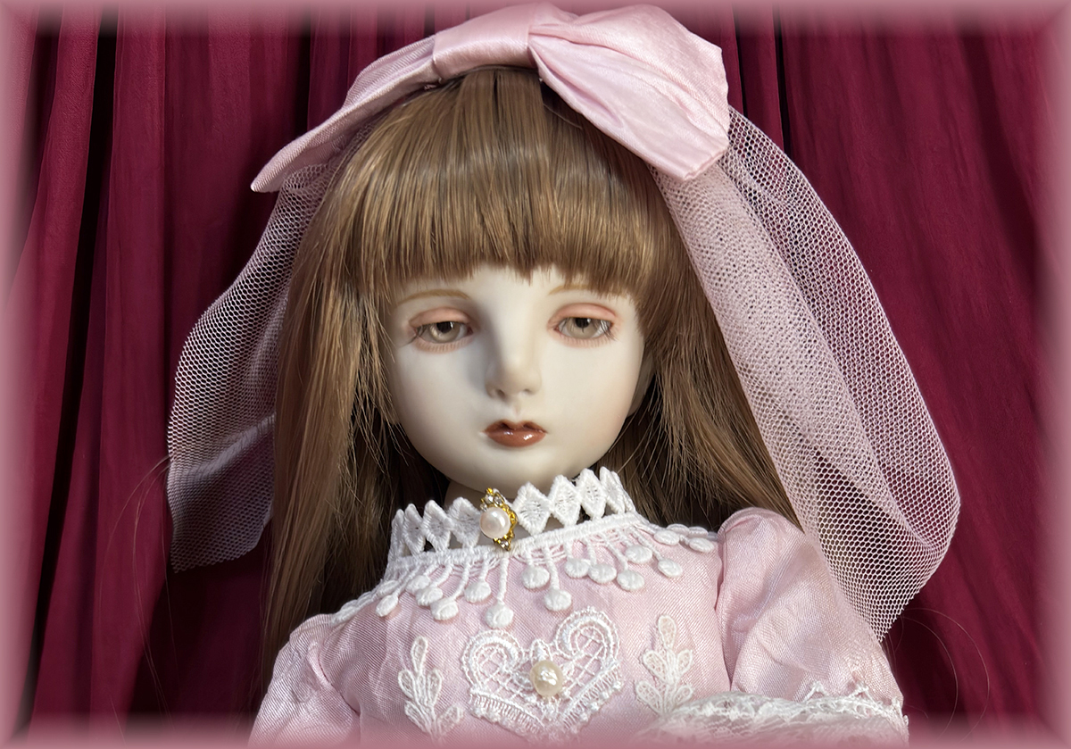 グラスアイ(桜色)、ナイロンウィッグ(髪色:ライトブラウン)