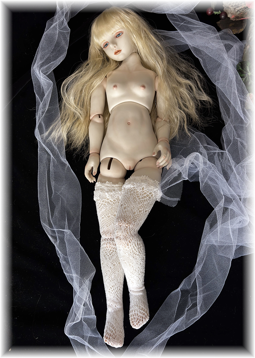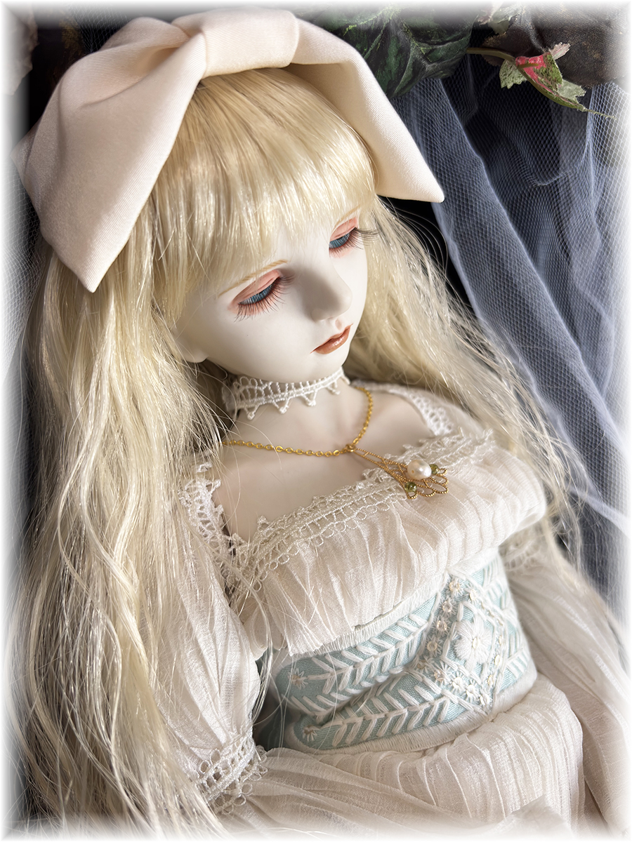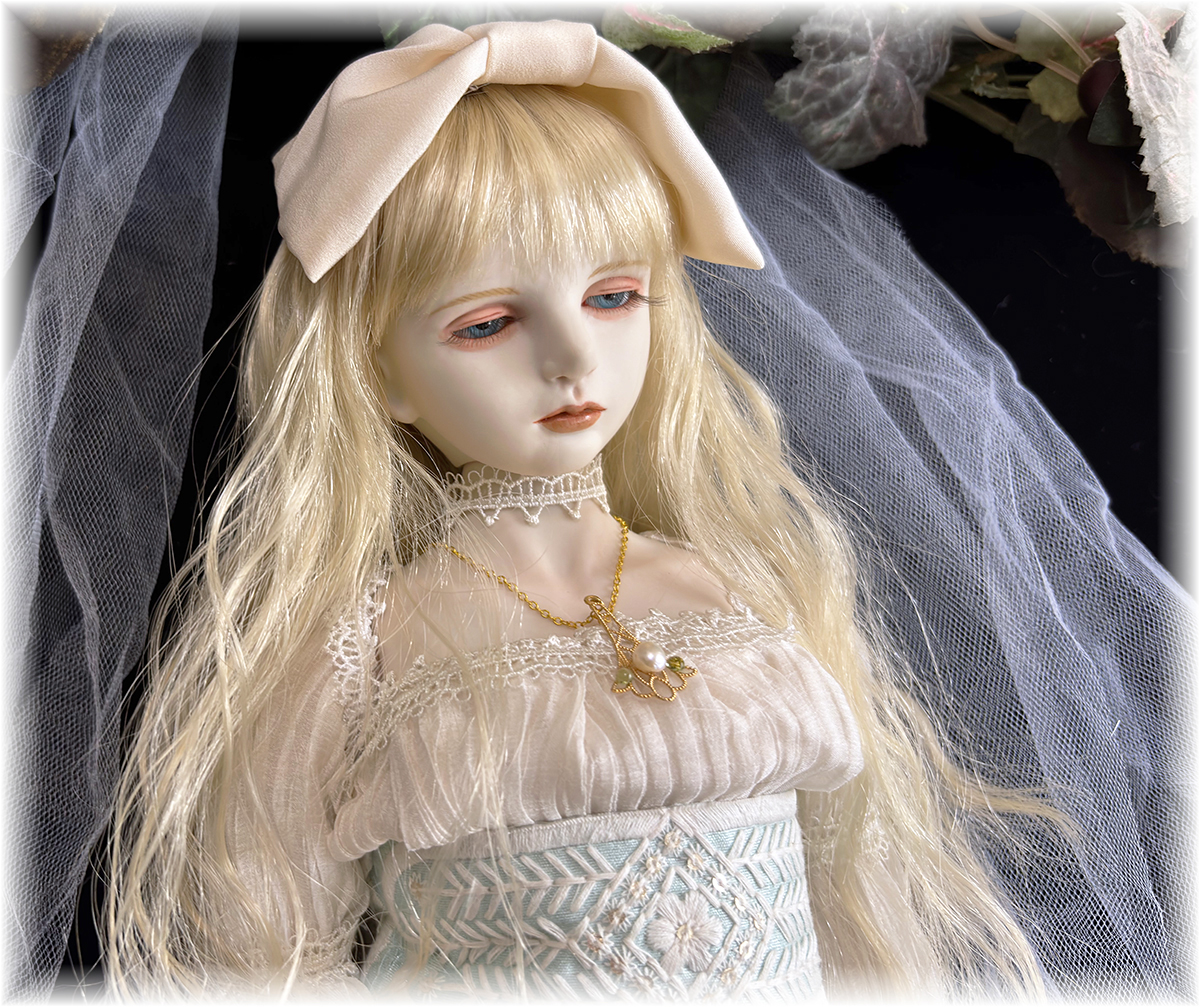 グラスアイ(スカイブルー)、ナイロンウィッグ(髪色:ブロンド)