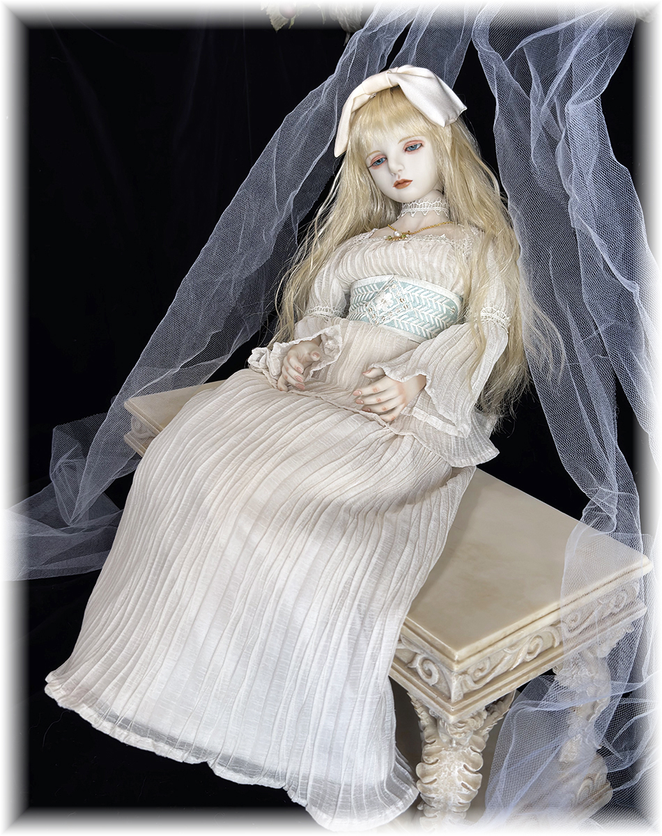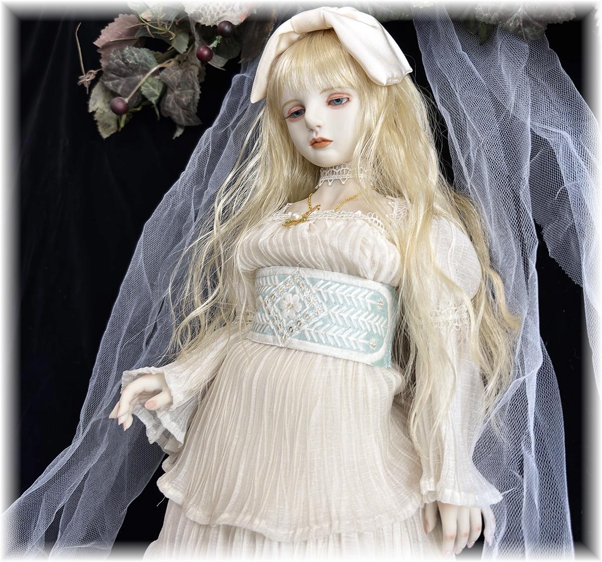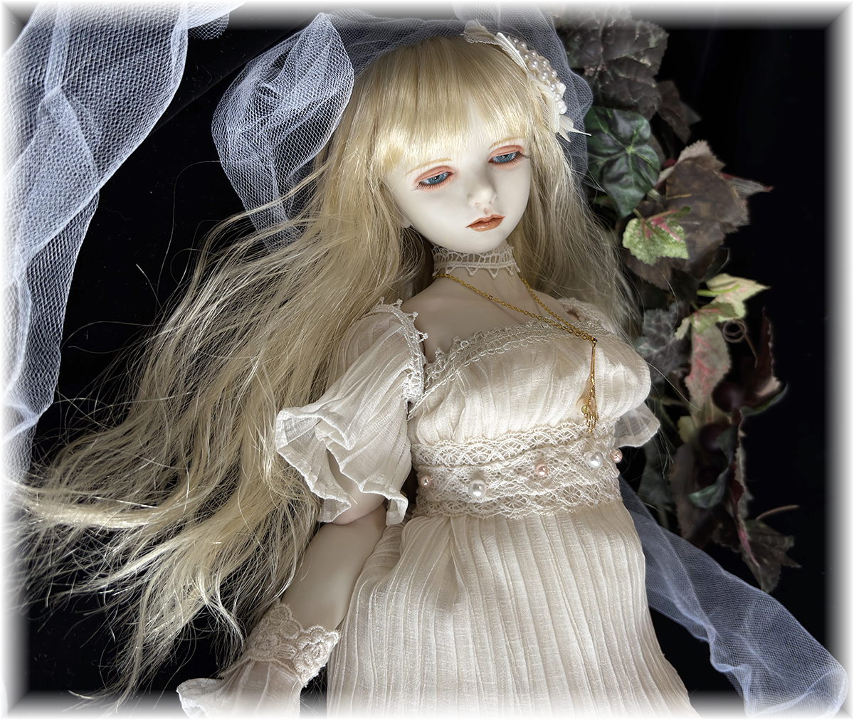 グラスアイ(スカイブルー)、ナイロンウィッグ(髪色:ブロンド)