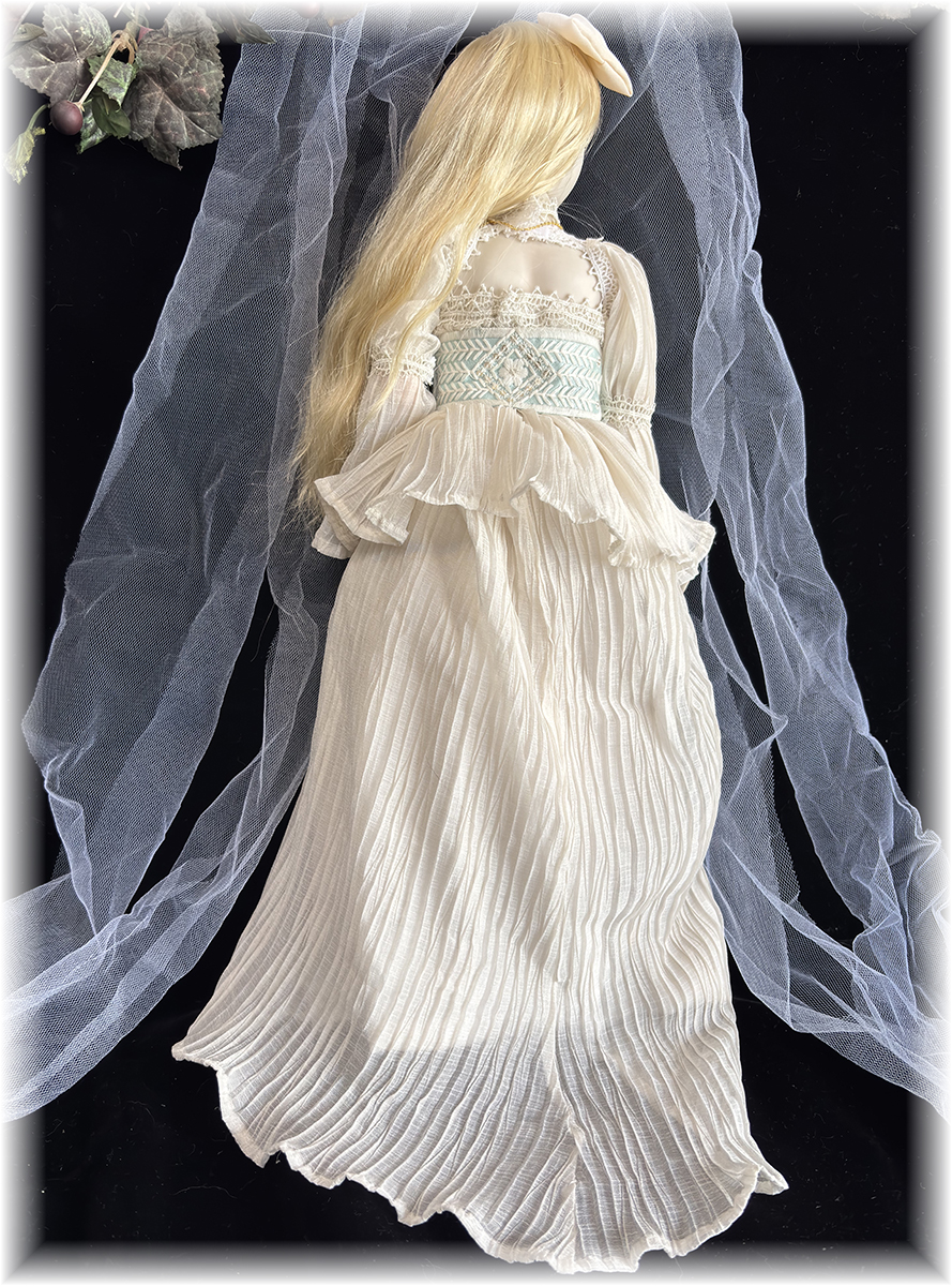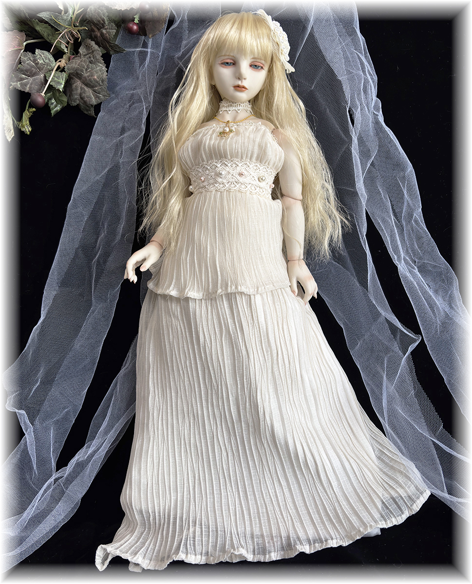 衣装(シフォンプリーツのドレスに半袖と長袖タイプの2種類のつけ袖、手首飾り(ベルクロ留め)