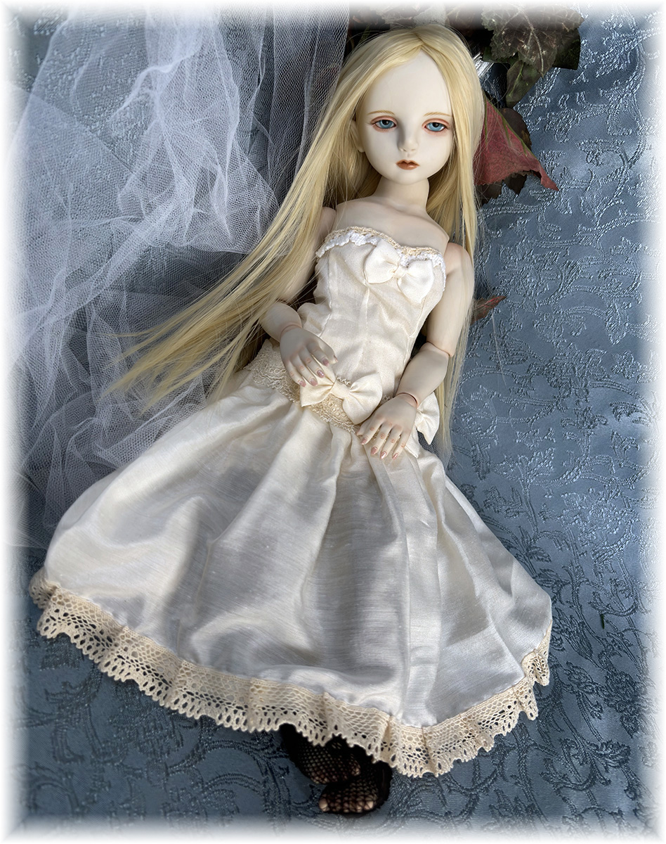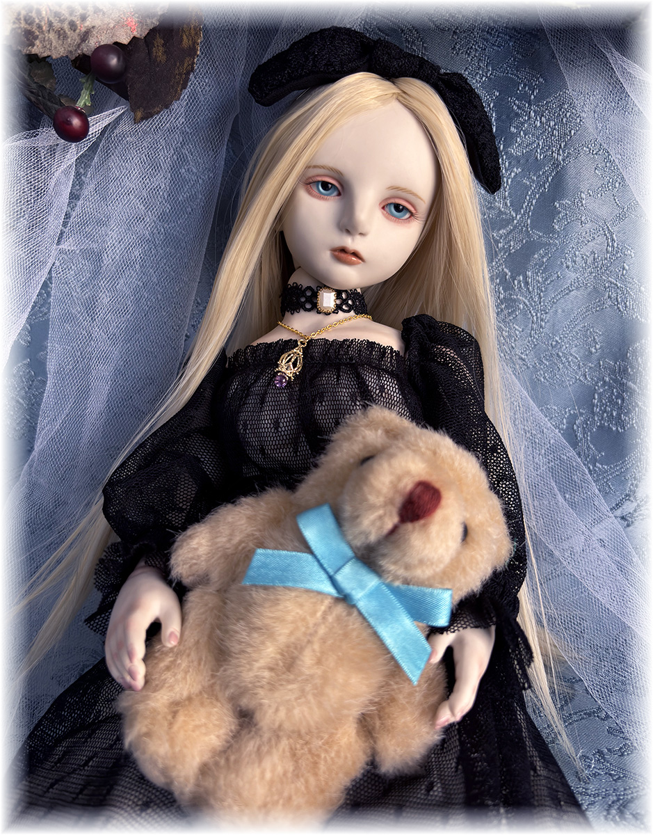 グラスアイ(ライトブルー)、ナイロンウィッグ(髪色:プラチナブロンド)